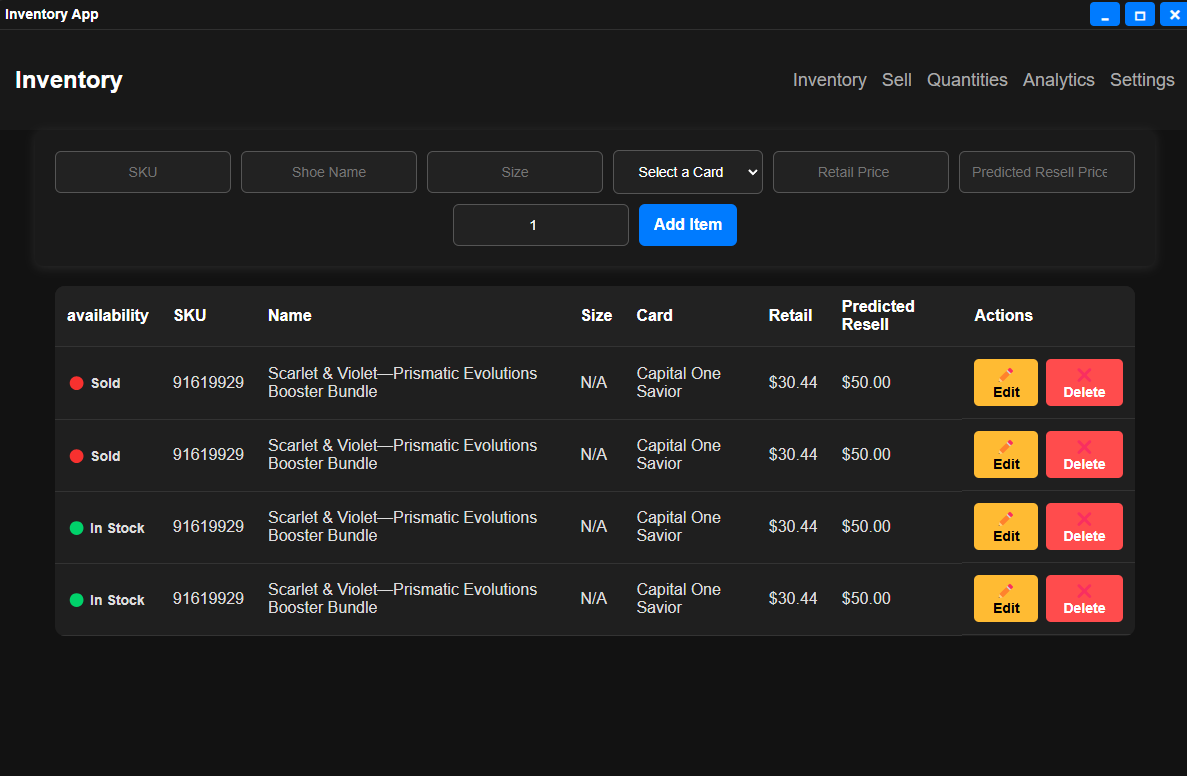 Electron + SQLite tool for tracking stock, costs, and sales with a fast dark UI.